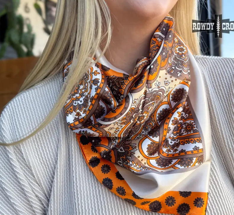 Polyester-satin wild rag, orange & dark tan
