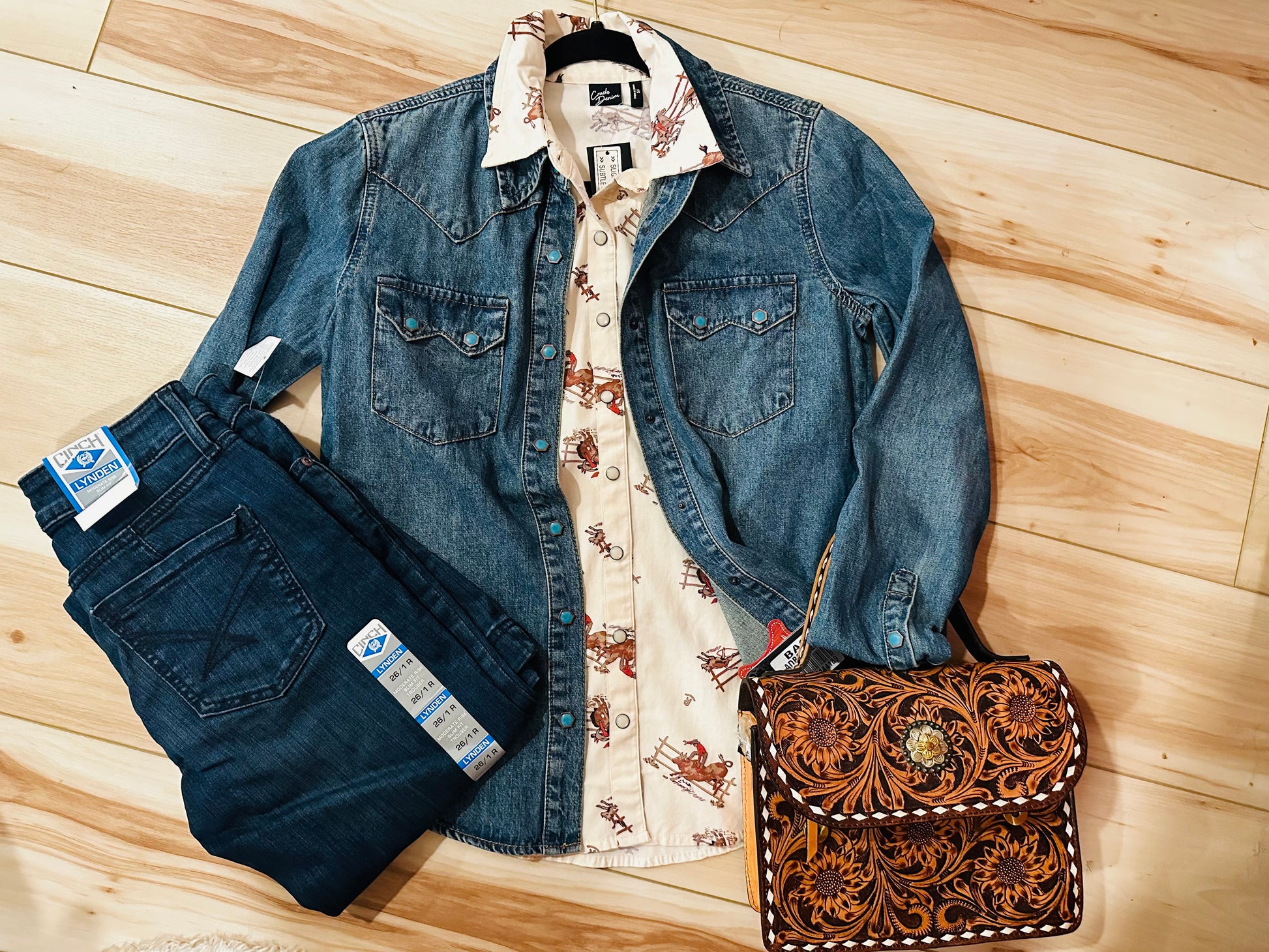 This premium women's western shirt is crafted from high-quality 100% cotton denim and features turquoise hexagon snaps with copper rims that are designed to make a statement whereever you go!